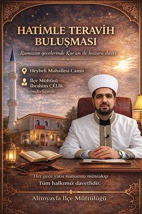 Altınyayla İlçe Müftülüğümüzün düzenlediği "Hatimle Teravih Buluşması" ile bu yıl Ramazan’ın manevi havasını en derinden soluyoruz. İlçe Müftümüz İbrahim Çelik hocamızın önderliğinde gerçekleşecek olan bu kutlu buluşmada, her rekatta Kur’an-ı Kerim’in feyziyle buluşuyor, dualarımızı birleştiriyoruz.