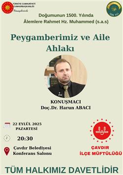 İlçe Müftülüğümüz tarafından Çavdır Belediyesi Konferans Salonunda gerçekleştirilen Doğumunun 1500. yılında alemlere rahmet olarak gönderilen Hz. Muhammed Mustafa (s.a.v) ve aile ahlakı konulu konferans gerçekleştirildi.