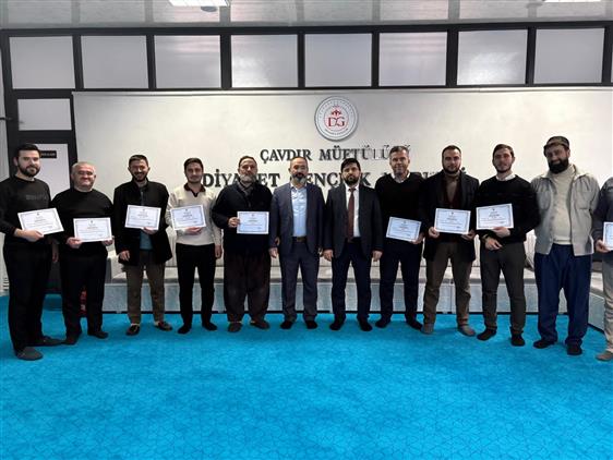 İlçemizde cami hizmetlerini yürüten din görevlilerimizin talim, tecvit ve tashih-i huruf ile ilgili bilgi ve becerilerini geliştirmek, Kur'an-ı Kerim'i usulüne uygun bir şekilde okumalarını sağlamak amacıyla, üç aylık süreyle talim ve tashih-i huruf kursu düzenlenip, 11 din görevlimizin katılımıyla 9 Ocak 2026 tarihinde tamamlandı.